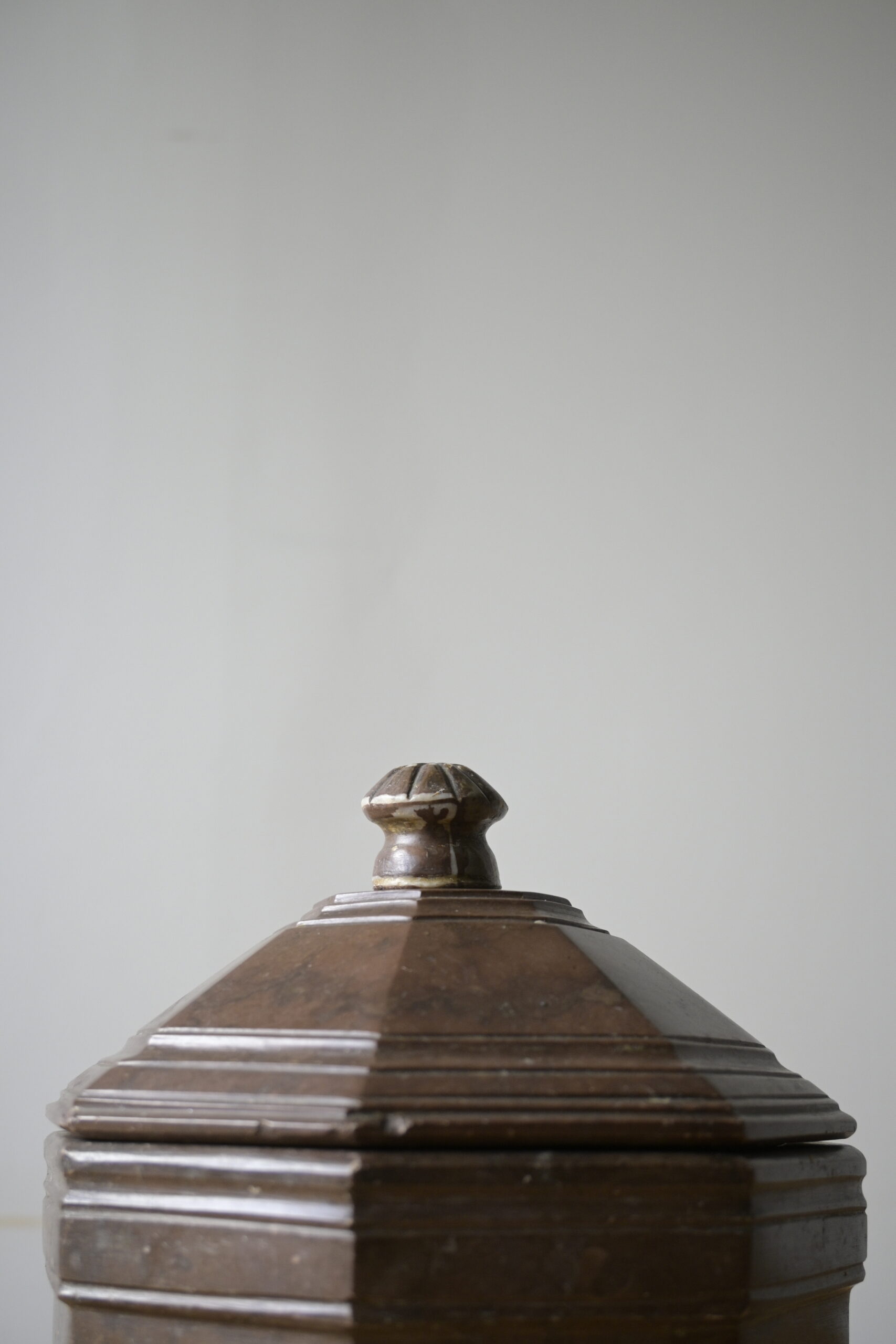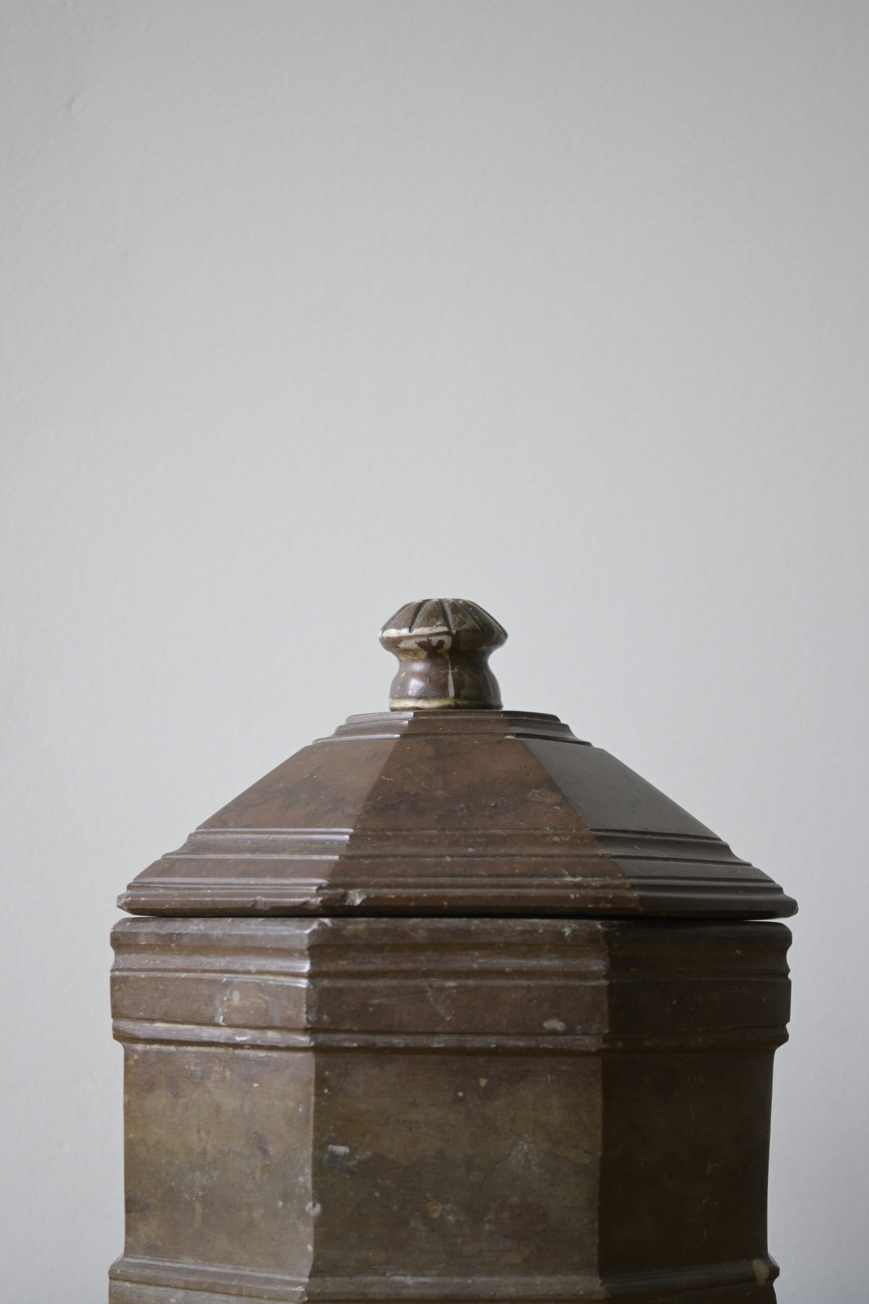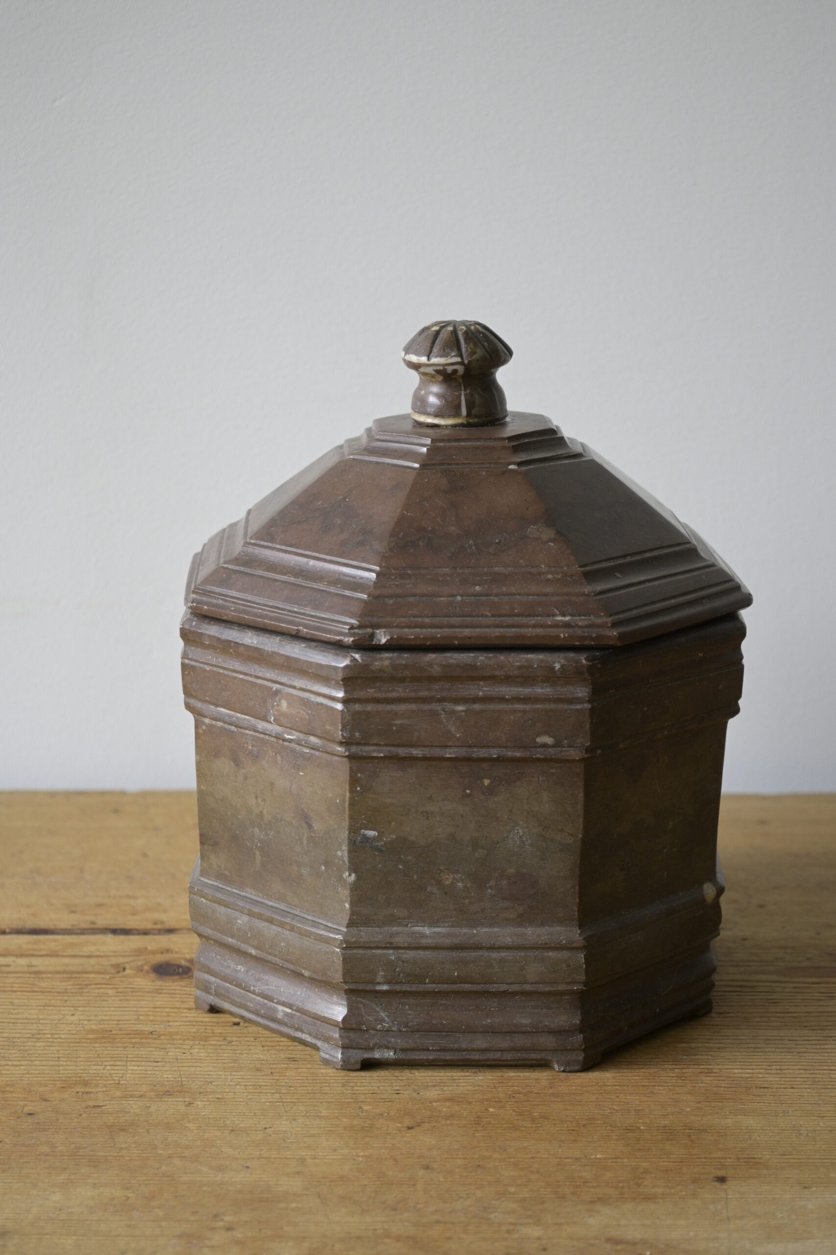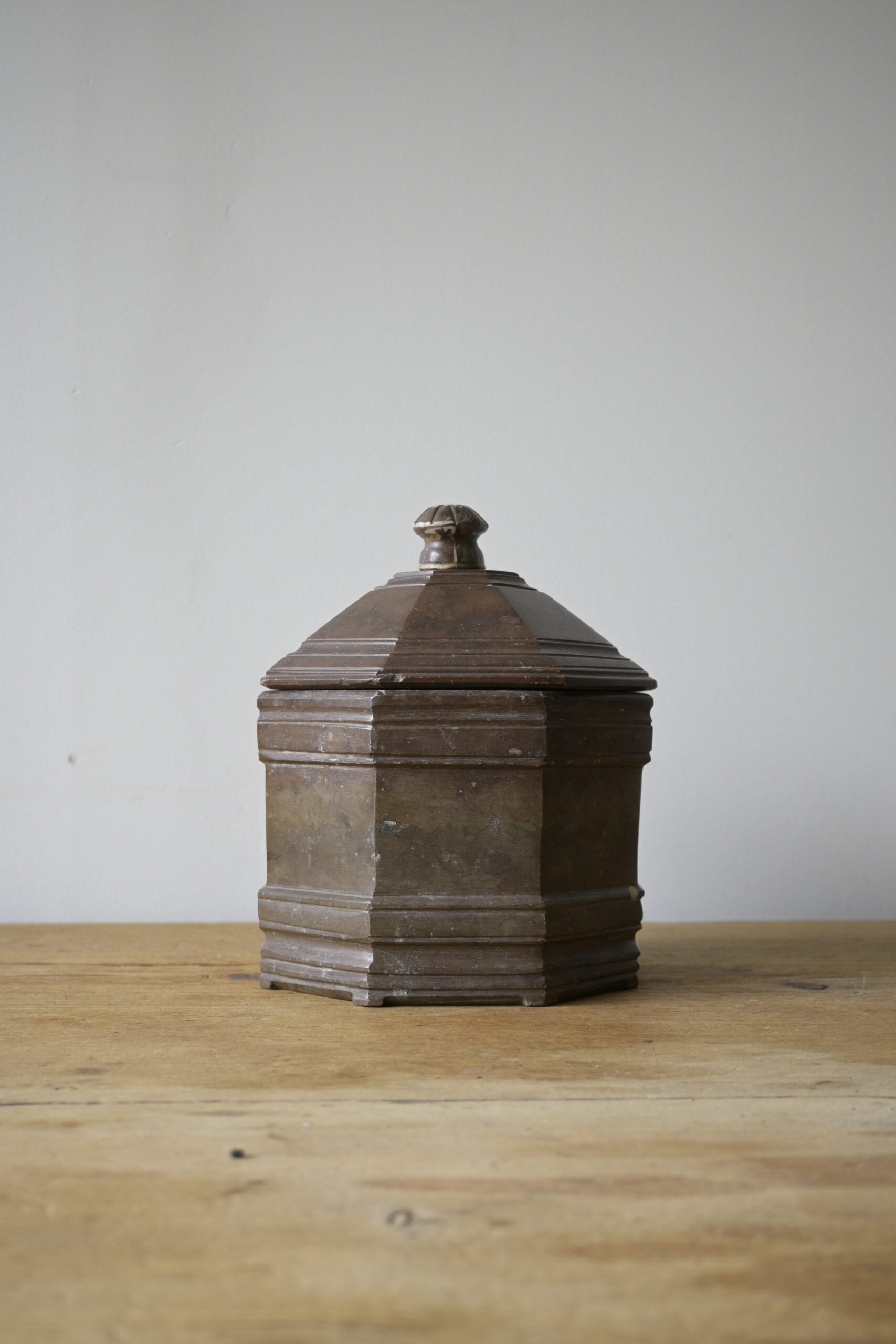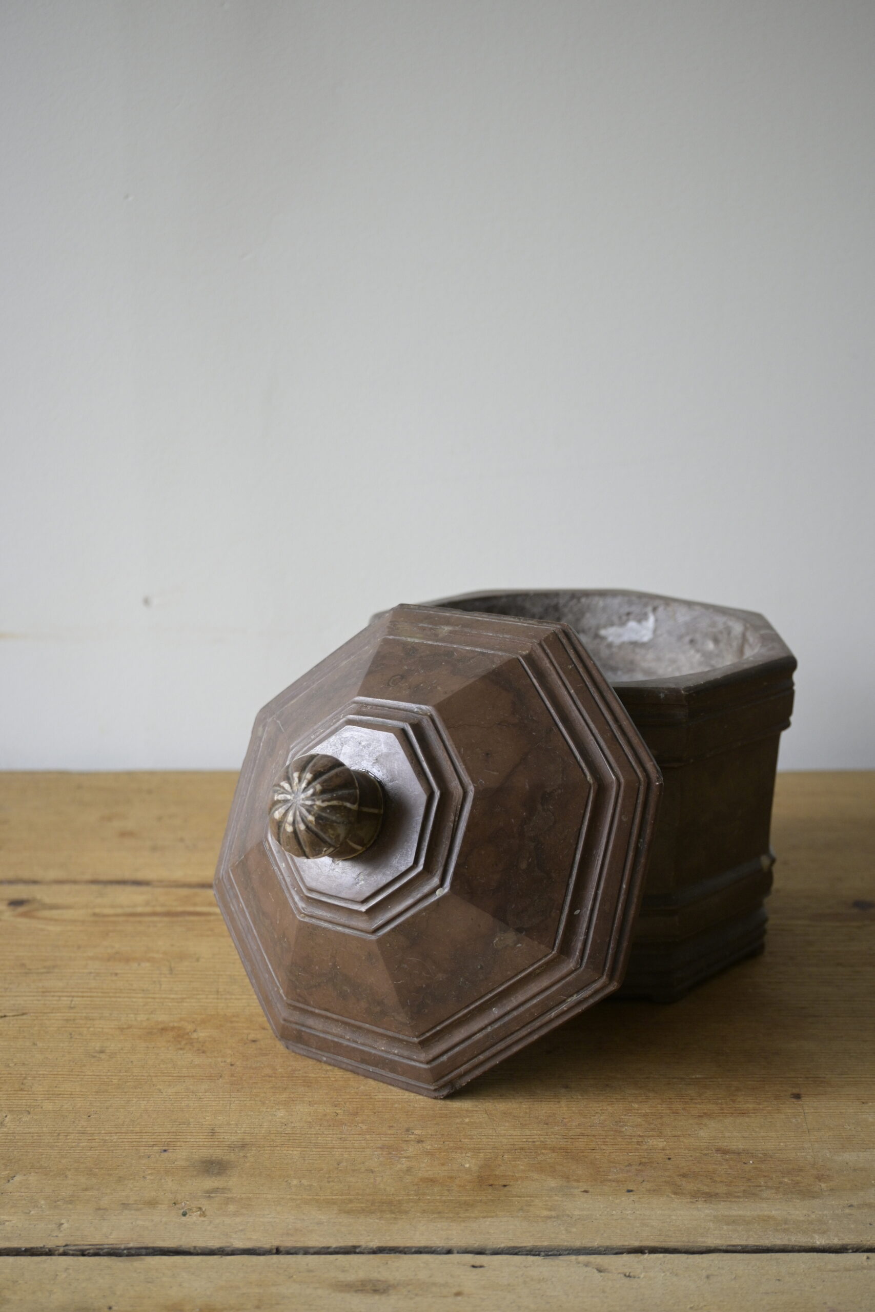 Beautiful octagon-shaped tobacco box made of Swedish limestone.